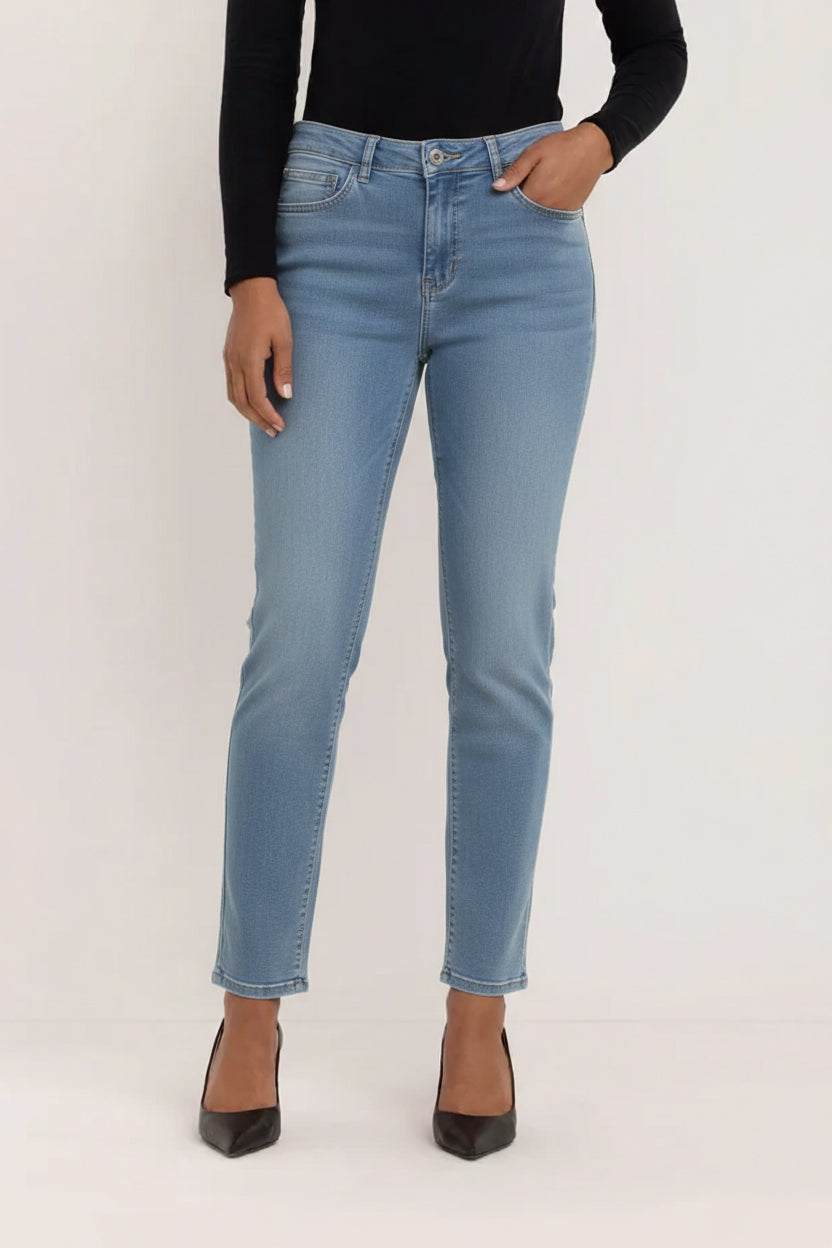 De Kora Denim Coloured Straight Jeans Petite heeft een regular fit in klassieke 5-pocketstijl, met iets meer ruimte in de taille en een slanker silhouet bij de bovenbenen. Dankzij de comfortabele snit, de flatterende achterkant en de smalle bovenbeenwijdte is deze jeans ideaal voor vrouwen met een wat bredere taille die toch een stijlvolle en comfortabele pasvorm willen. Bovendien wordt dankzij de WISER WASH-technologie de lichte wassing van deze jeans op milieuvriendelijke wijze bereikt – een extra pluspunt op het gebied van duurzaamheid.