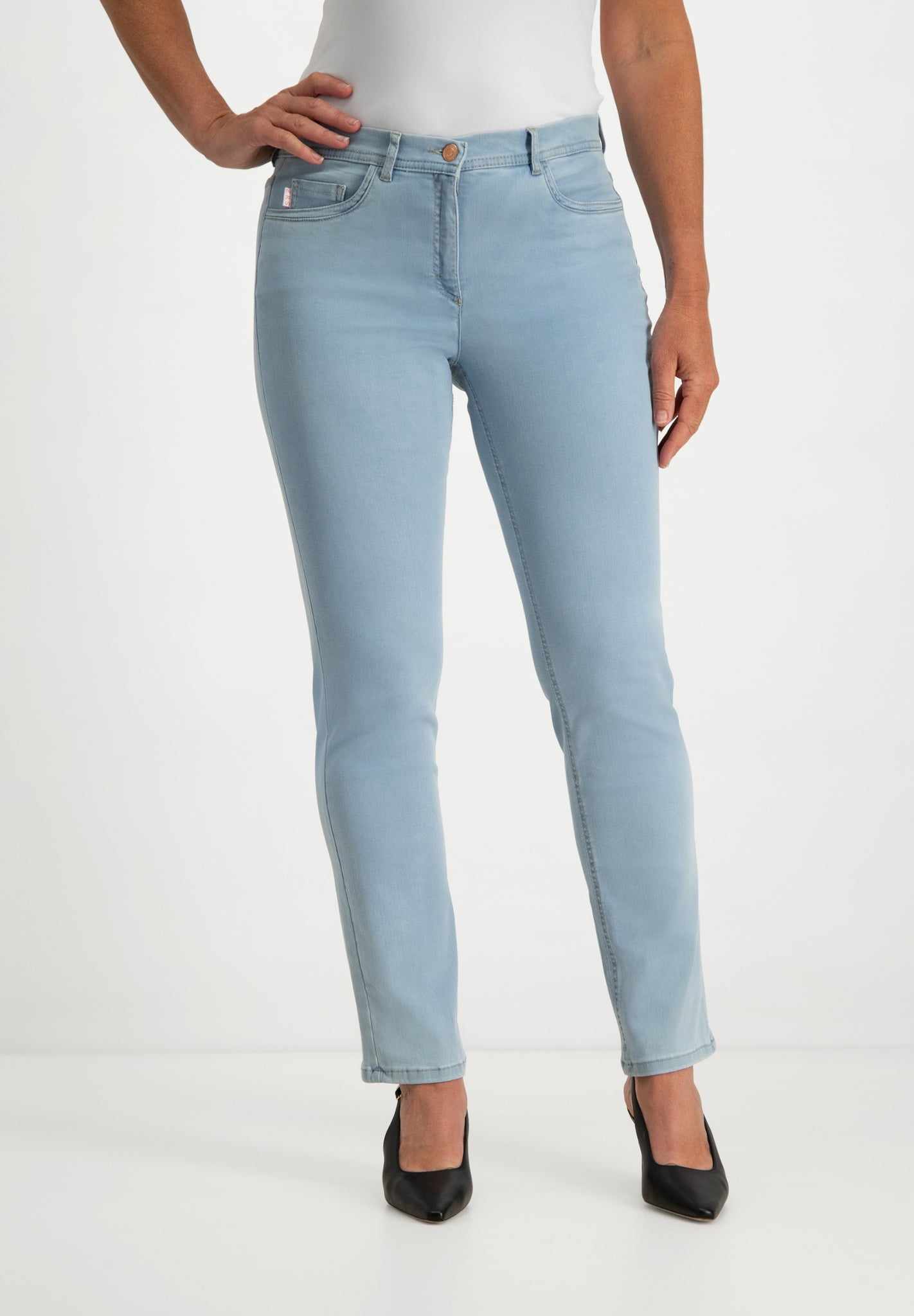 Ginie Slim Pants in Bleach combines premium stretch fabric. A comfortable mid-rise and our ZRS invisible elastic inside the waistband create a smooth, gap-free fit and all-day comfort, Finished with neat pockets and a clean front. It's designed for everyday comfort. Mix and match it with the ZRS Timeless Pants collection.