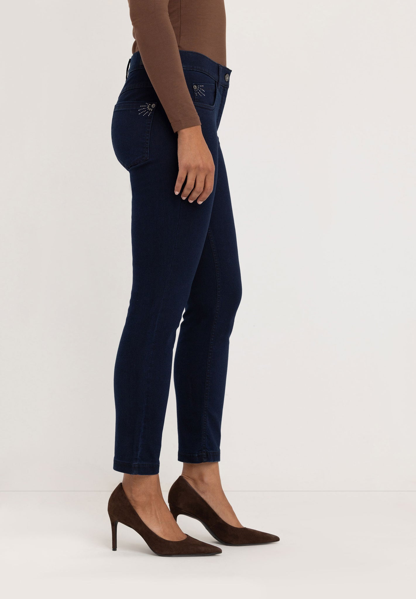 Twigie Skinny Jeans in Blue Black combines soft stretch denim with an authentic look. A comfortable mid-rise and our ZRS invisible elastic inside the waistband create a smooth, gap-free fit and all-day comfort, Finished with a classic five‑pocket design and zip fly. It's durable and easy to style for everyday wear. Mix and match it with the ZRS Timeless Pants collection.