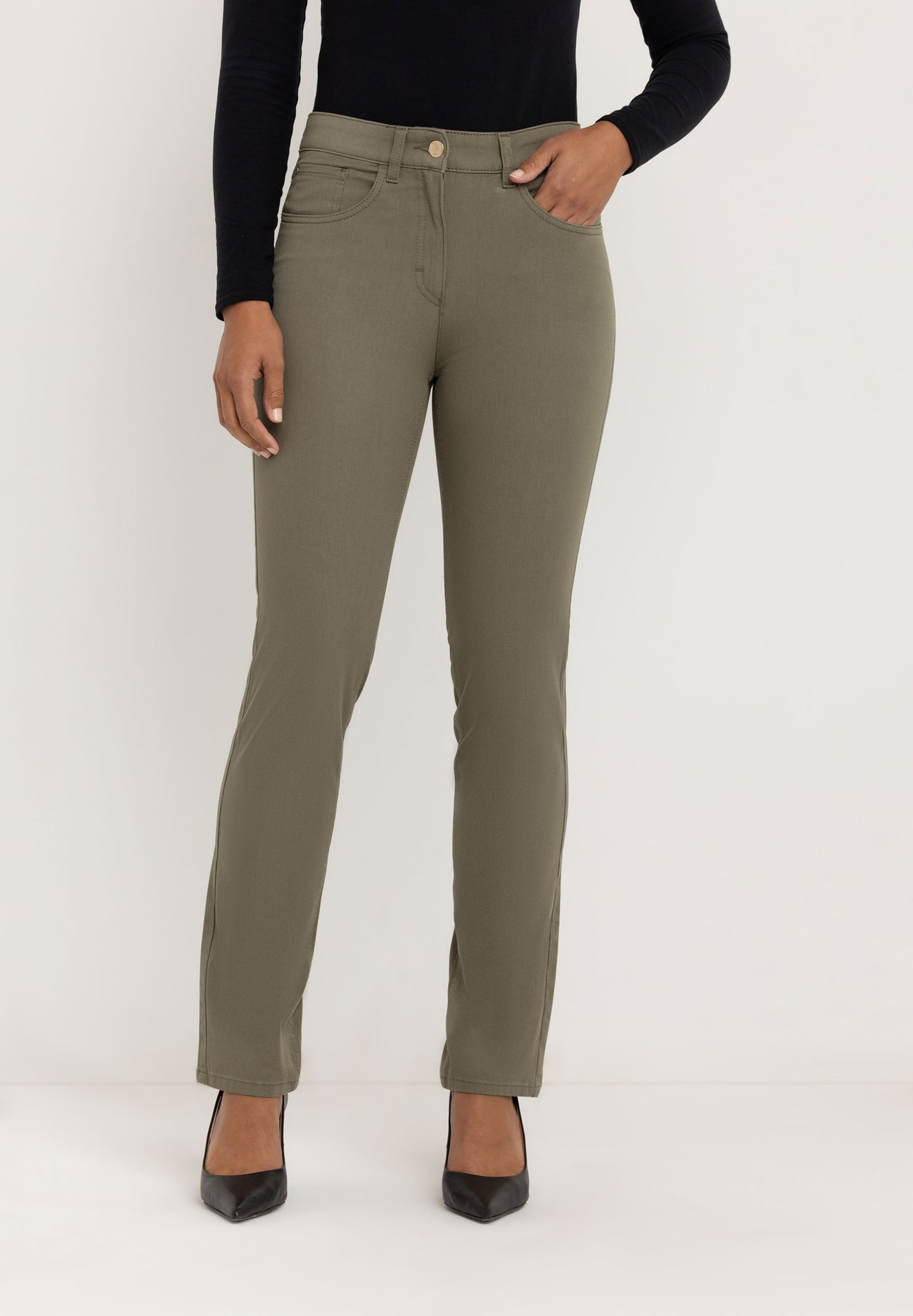 Kora Coloured Straight Pants in Mud Green combines bi-stretch fabric that moves with you. A comfortable mid-rise and our ZRS invisible elastic inside the waistband create a smooth, gap-free fit and all-day comfort, Finished with neat pockets and a clean front. It's holds its shape wear after wear. Mix and match it with the ZRS Timeless Pants collection.
